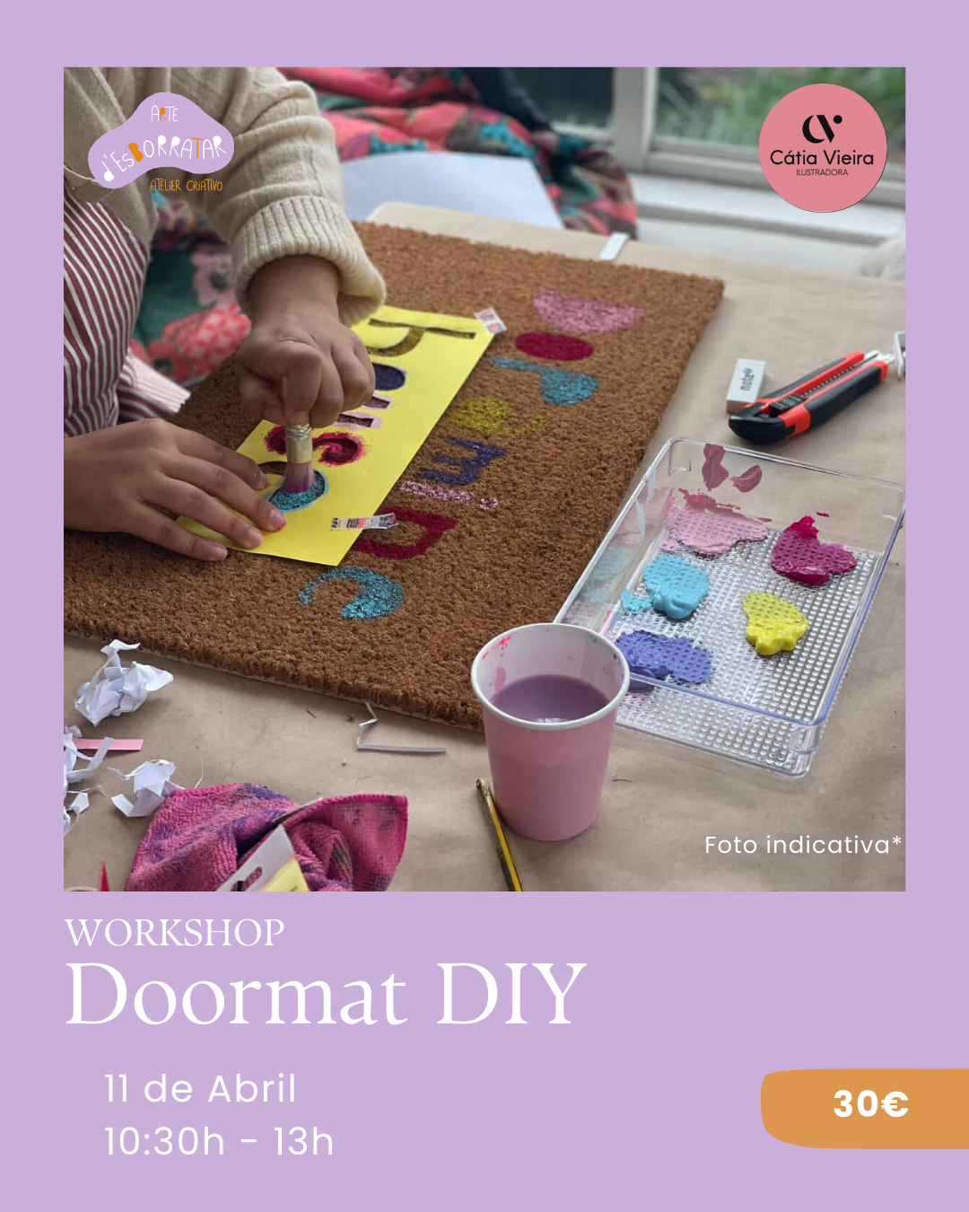 Pinta e personaliza um tapete de entrada em fibra de coco, enquanto exploras a cor, padrões visuais e a tua expressão pessoal!