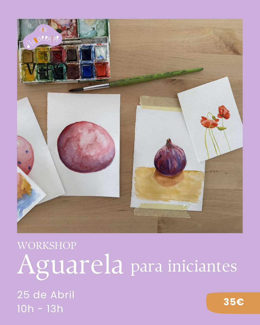 É também um workshop destinado a pessoas que já tenham algum contacto com a aguarela e queiram aprender a elevar a técnica com exercícios exploratórios e sem pressão!